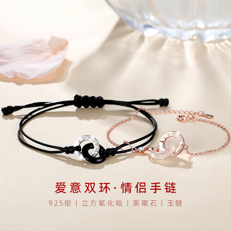 Ring buckle Sterling Silver 925 couple bracelet light luxury all-match obsidian bracelet Mobius ring chalcedony bracelet