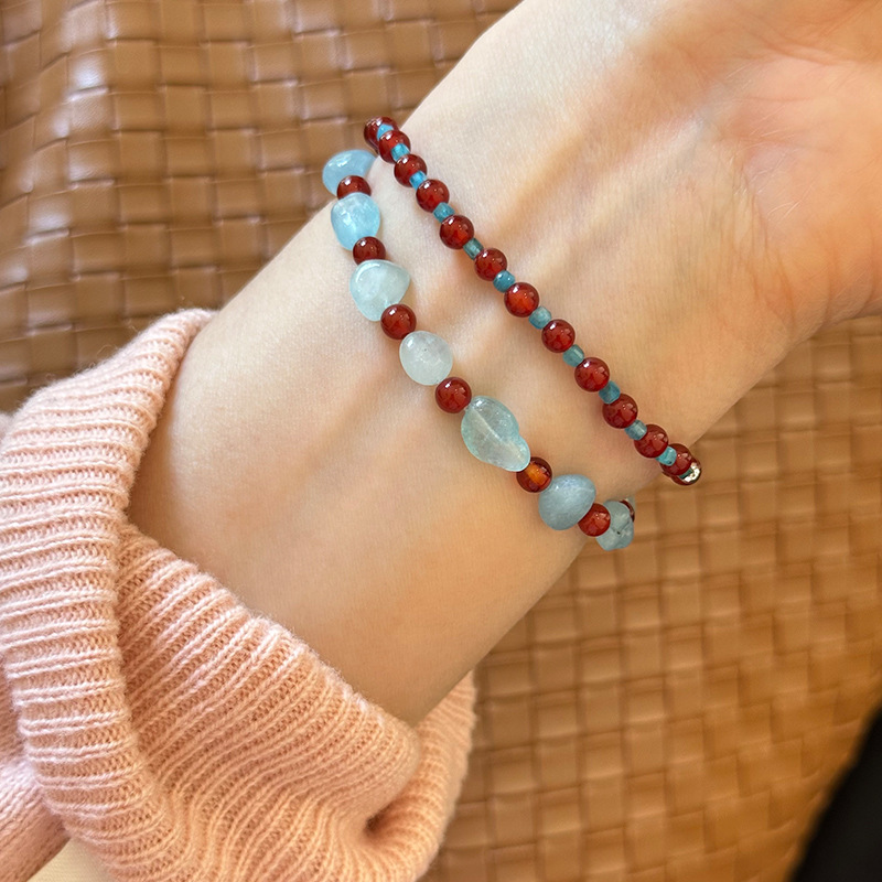 Natural Aquamarine Red Agate Bracelet Women's Simple Handmade Design Sweet Elegant Beaded Bracelet Stacked Wearing Combination