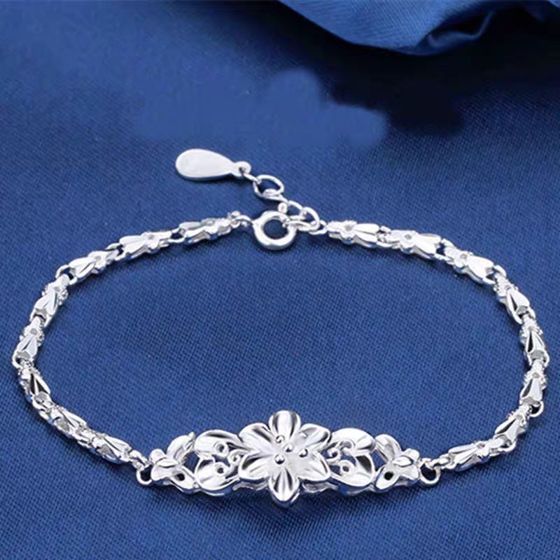 Sterling silver butterfly love flower bracelet girlfriend pure silver bracelet student Korean style jewelry birthday Qixi 520 live hot
