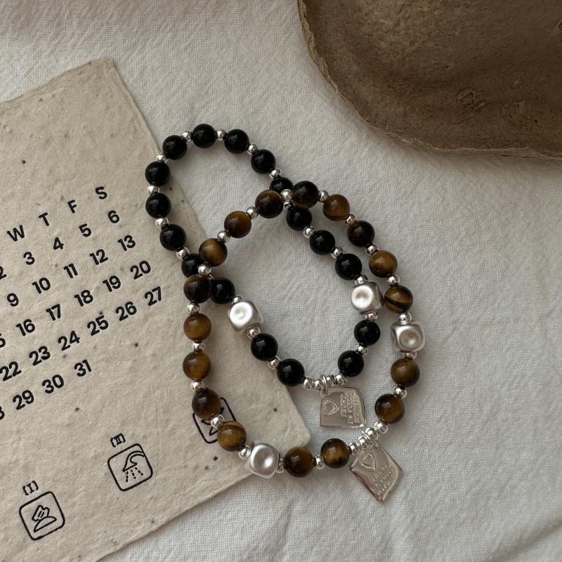 S925 Sterling Silver Korean-style Merad Tiger Eye Beaded Bracelet Korean-style Basic INS Blogger First Jewelry