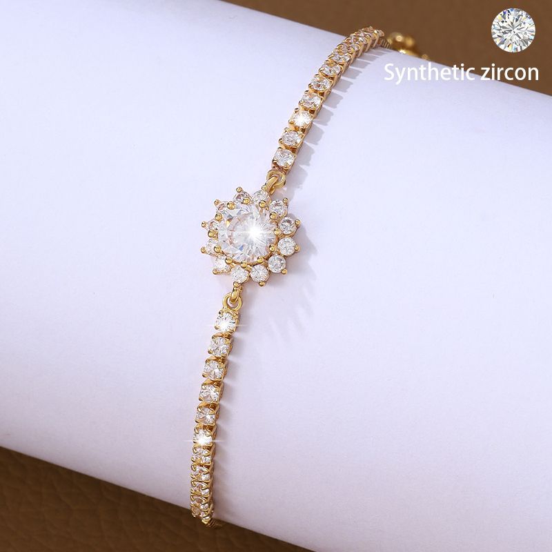 Ins Trendy New Arrival Light Luxury Micro-inlaid Zircon Sunflower Pull Bracelet Women's Japanese-Korean Style Fashion Super Flash Flower Bracelet