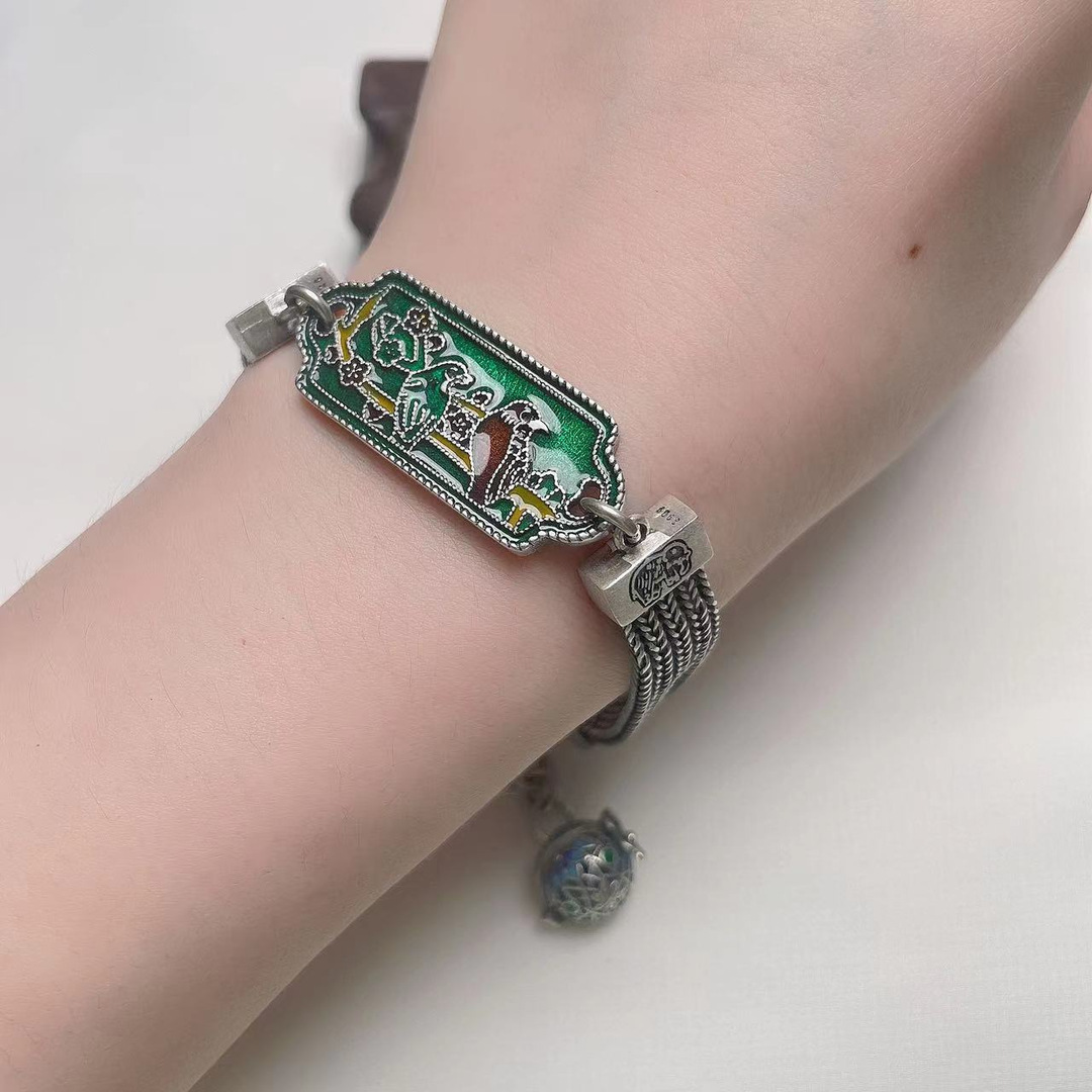 s925 silver Diy handmade enamel palace style sterling silver wedding eyebrow bracelet women's gift for Mother