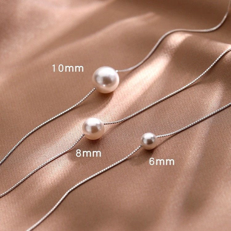 Korean Pearl Pendant Snake Bone Chain Simple Elegant Clavicle Chain Niche Design Titanium Steel Silver Necklace Jewelry for Women