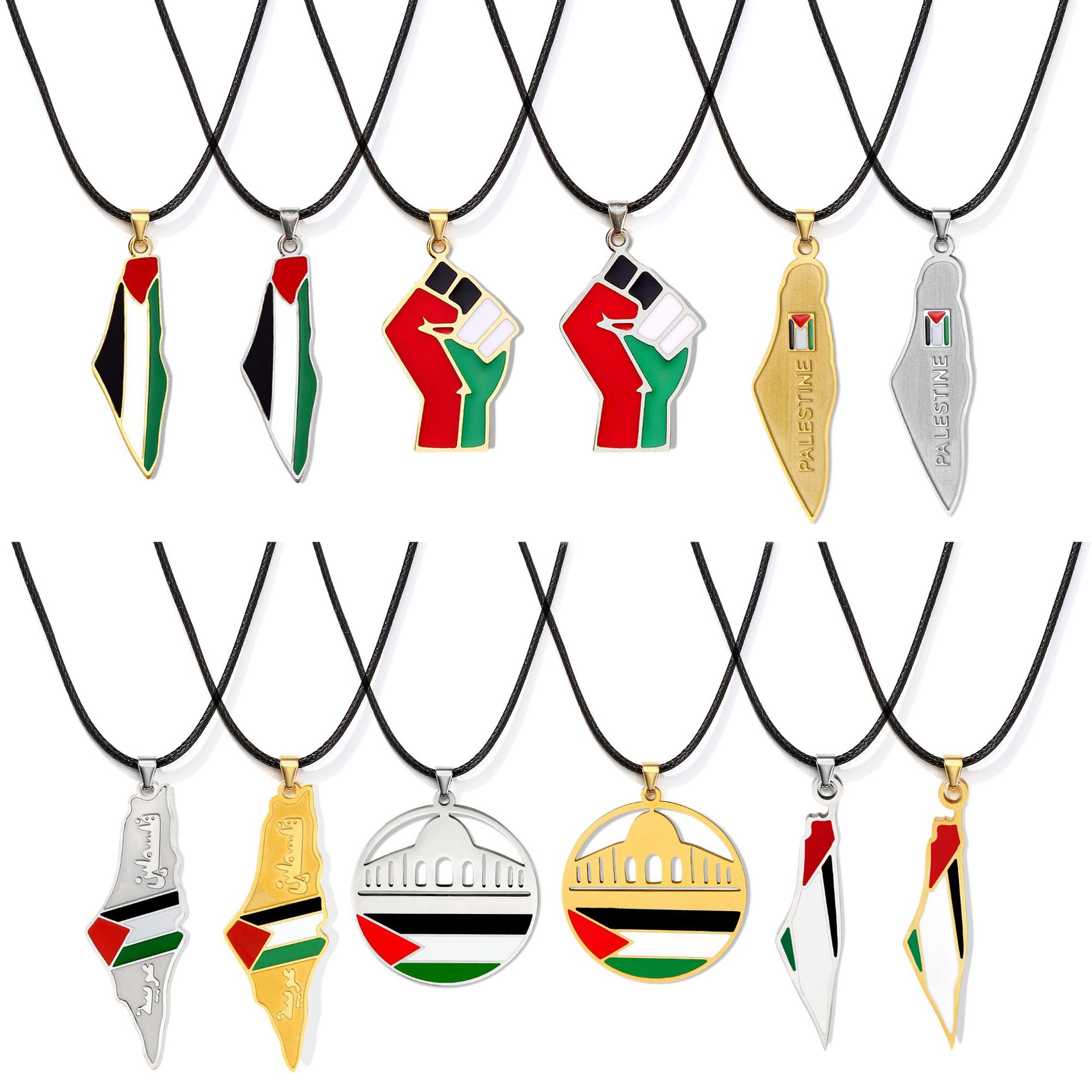 Cross-border hot selling free Palestinian fist metal pendant necklace personalized gold enamel factory supply