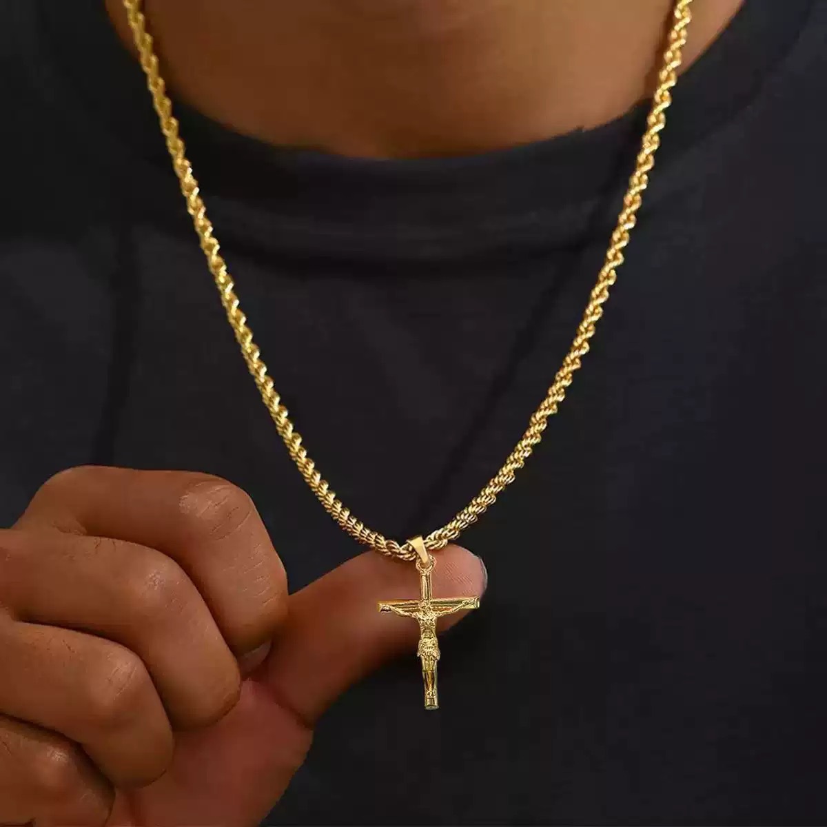European and American Cross-Border Best-Selling Religious Cross Pendant Twist Necklace Copper Plated 18K Color-Preserving Hip-Hop Style Unisex Necklace