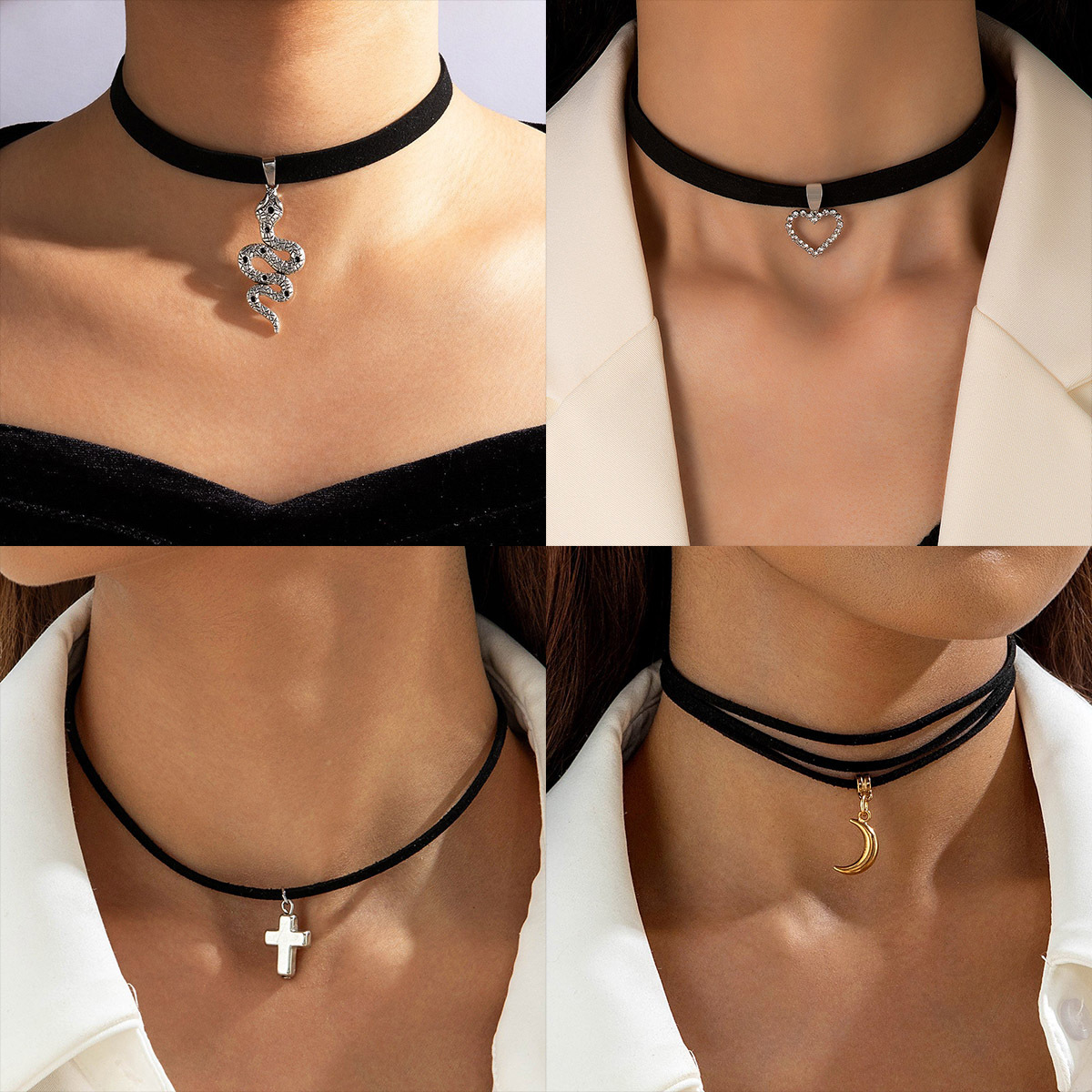 European and American Style Retro Gothic Style Short Flannel Snake Necklace Black Fashion Necklace Collar Collar Chain