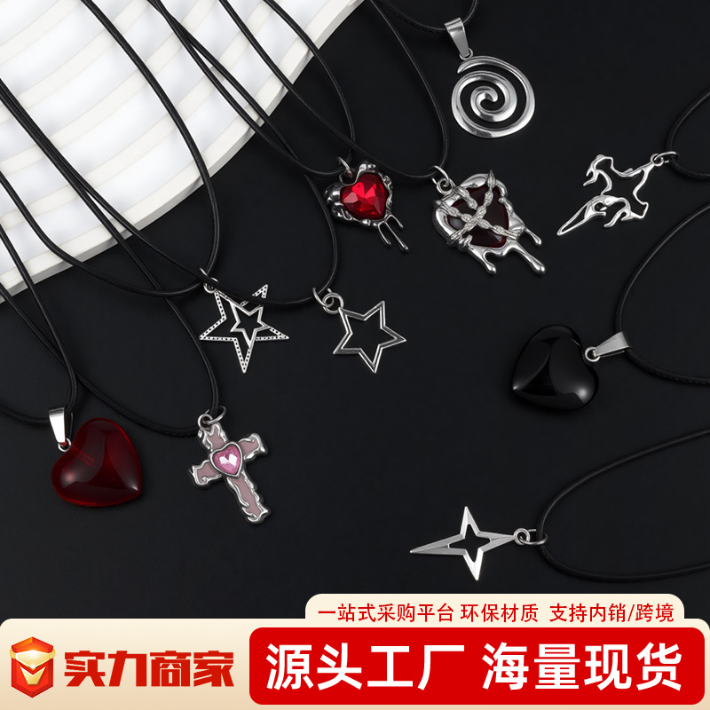 Cross-Border Dark Style Multi-Element Pendant Necklace Set Star Heart Cross Black Rope Necklace European and American Punk