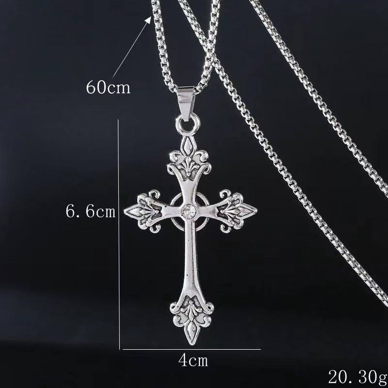 Korean Niche Design Bm Same Style Silver Cross Necklace Retro Sexy Long Necklace Retro Punk Neck Jewelry