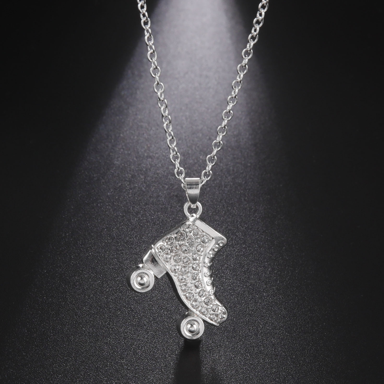 Cross-border European and American explosions personality fashion sweater chain alloy plating silver roller skates rhinestone necklace jewelry wholesale