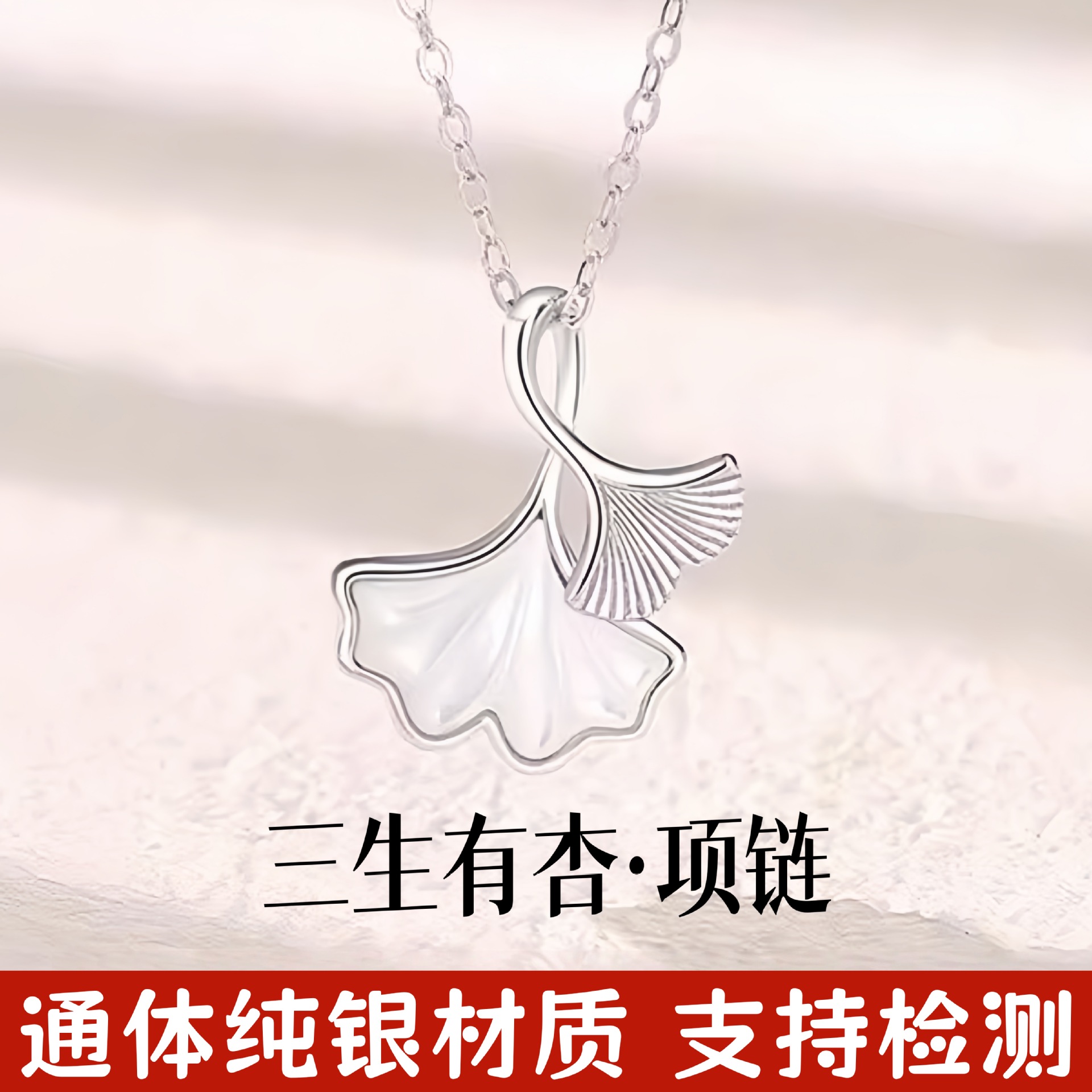 S999 Pure Silver Three-Piece Apricot Necklace, Light Luxury Niche Fashion Versatile High-End Apricot Leaf Pure Silver Clavicle Chain New Model