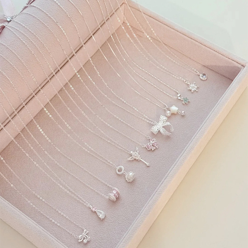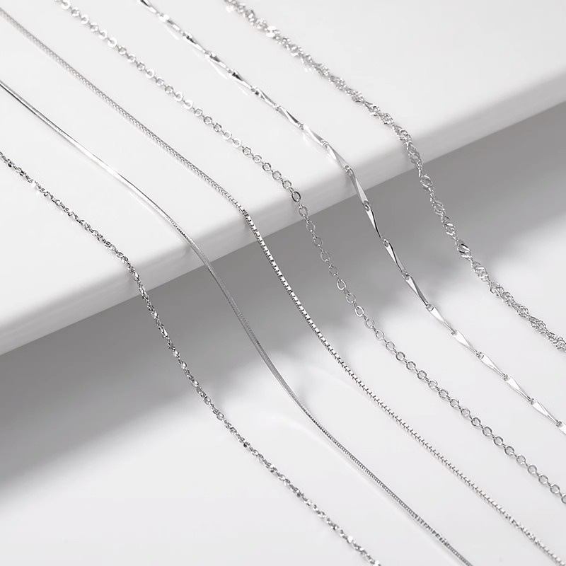 S925 Sterling Silver Necklace Box Chain Yuanbao Melon Seed Water Wave Gyokata Snake Bone Cross Women's Clavicle Chain with Chain Free Shipping