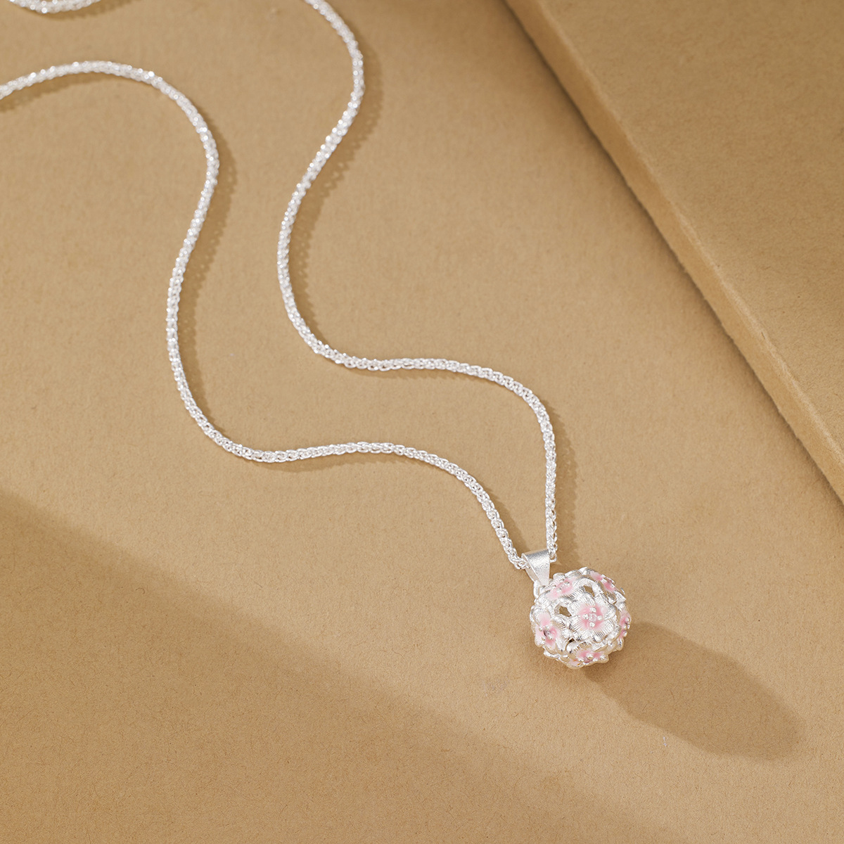 Tiktok Hot-Selling Copper Silver-Plated Pink Hydrangea Ball Necklace Simple Exquisite Versatile Pink Hydrangea Elegant Fashion Necklace Pendant