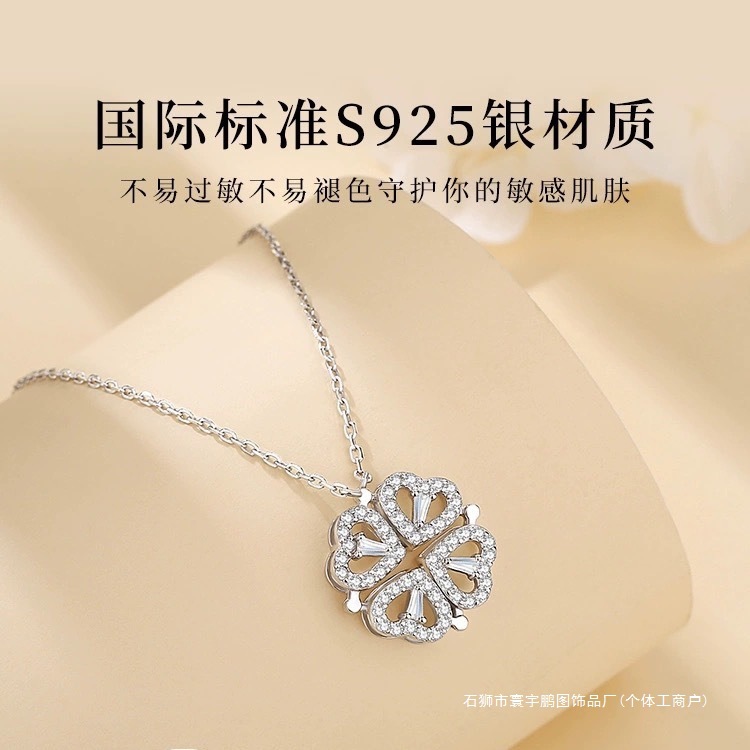 Source 925 Sterling Silver Four-Leaf Clover One-Piece Two-Wear Necklace Elegant Tassel Pendant Clavicle Chain Birthday and Chinese Valentine's Day Gift