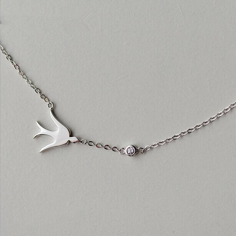 s925 Sterling Silver Necklace Wholesale Korean Style Cute Fresh Swallow Diamond Collarbone Necklace Pendant Women
