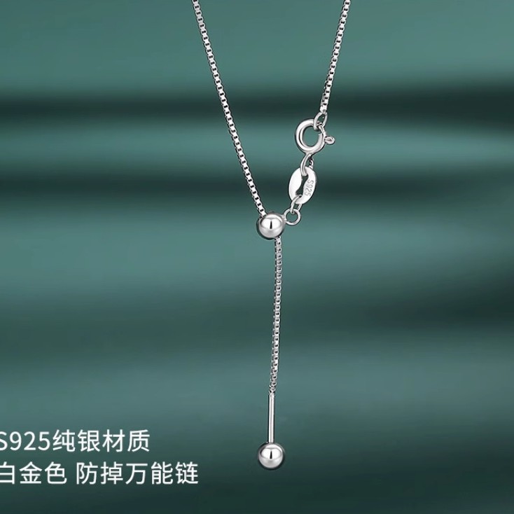 s925 sterling silver universal box necklace female luantong beaded with needle positioning adjustable box DIY clavicle chain