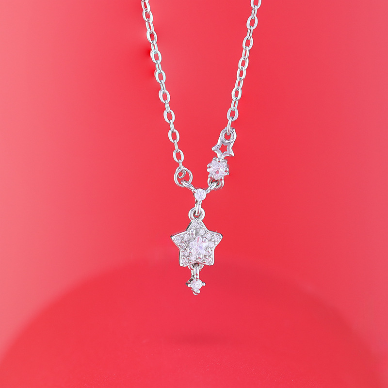 S999 Silver Star Necklace Women's Fresh Sweet Fashion All-match High-end Sense Design Zircon Five-pointed Star Clavicle Chain