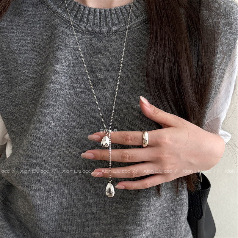 Casual Silver Water Drop Titanium Steel Necklace for Women 2025 New High-End Long Sweater Chain Cold Style Decorative Accessories