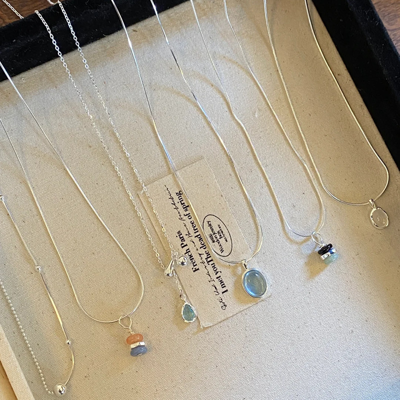 Summer Daily Joker S925 Sterling Silver Same-style Aqua Blue Necklace Women's High-end Clavicle Chain New Product
