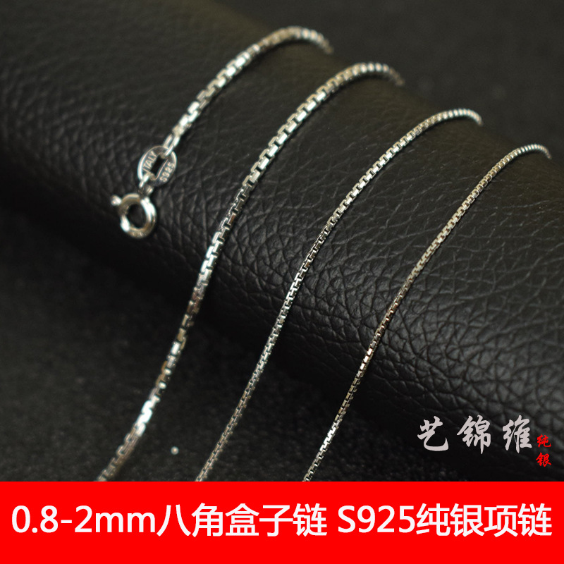 S925 Silver Octagon Box Chain European and American Hot Selling Italian Silver Necklace Men's and Women's Clavicle Chain Silver Plated Platinum
