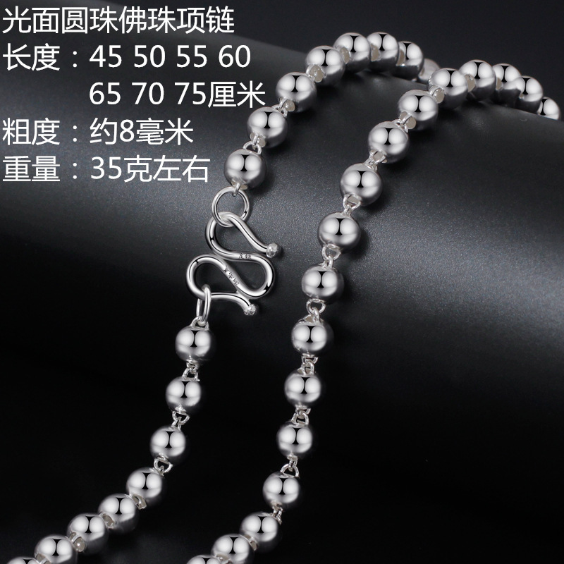Korean Style Silver Plated Classic Buddha Bead Necklace Glossy Hollow Round Bead Men's Necklace Simple Necklace Fashion Trendy Jewelry