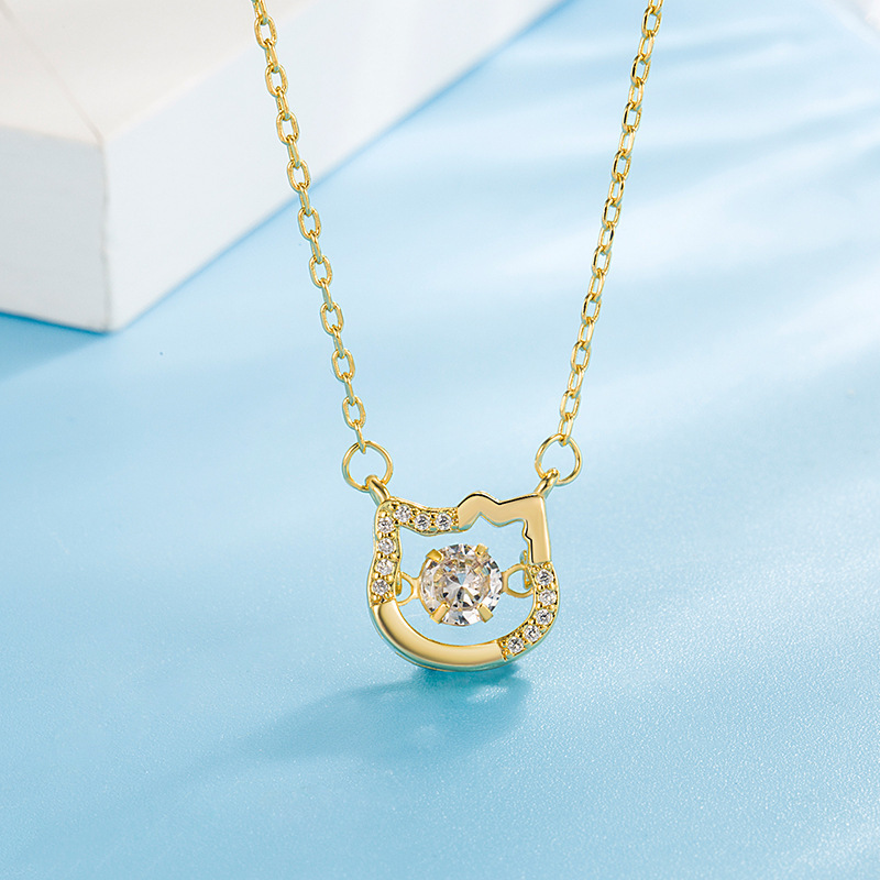 Square s925 Sterling Silver New Style Cat Beating Heart Necklace Women's Light Luxury Smart Pendant Fashionable Collarbone Chain Women's Ornaments