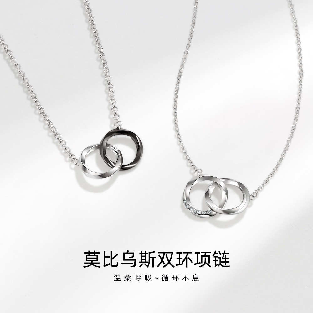 Sterling Silver Mobius Double-Ring Couple Necklace Women's Fashionable Simple Creative Clavicle Chain All-Match Plain Ring Pendant Pair