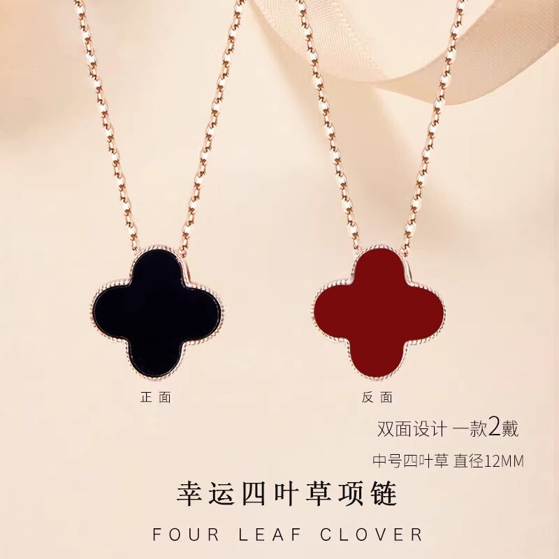 S925 Sterling Silver Double-Sided Four-Leaf Clover Necklace for Women, Versatile, Fashionable and High-End Design Agate Mother-Of-Pearl Pendant Necklace for Women