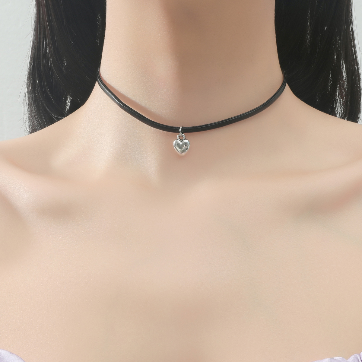 S925 sterling silver glossy love pendant black rope necklace women's fashion personality all-match simple trend high-end sense neck chain