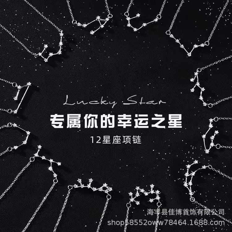 Cross-border AliExpress guard twelve constellations S925 sterling silver simple fashion temperament necklace women's clavicle chain wholesale
