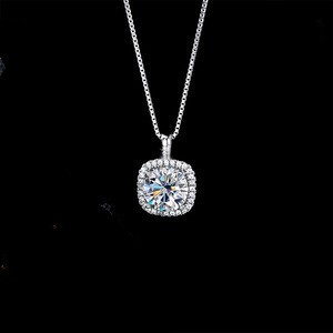 S925 Sterling Silver Small Sugar Cube Moissanite Necklace Women's Square Clavicle Chain Accessible Luxury Niche Design Cross-Border Silver Jewelry