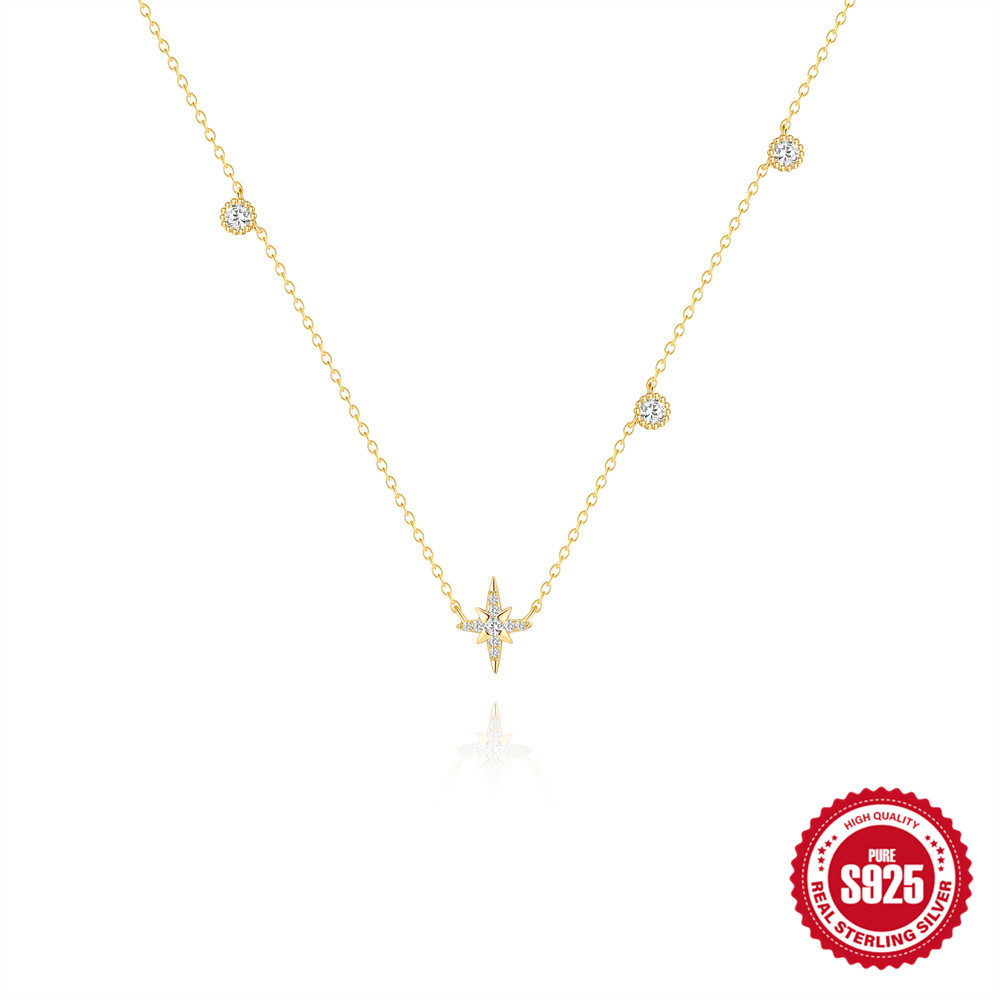 Cross-Border Fashion Simple Ins Style S925 Sterling Silver Eight-Pointed Star Element Stacked Diamond Daily Matchinging Necklace