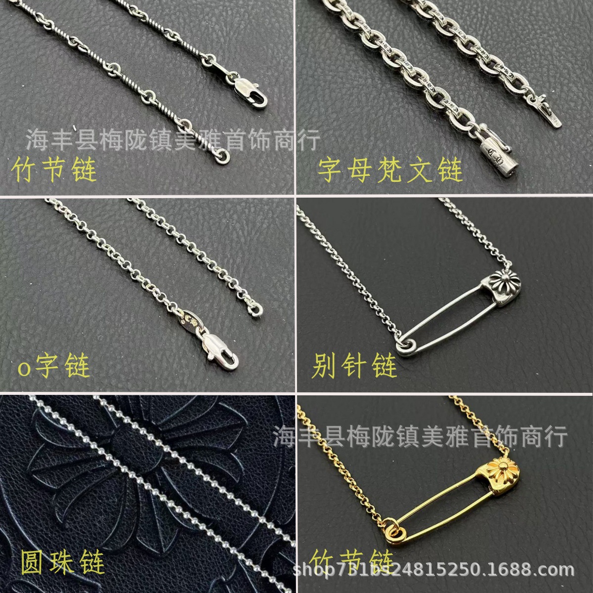 CH Chao Cro-ha Thai silver retro distressed clip pin pin necklace clavicle chain hip-hop European and American wholesale necklace