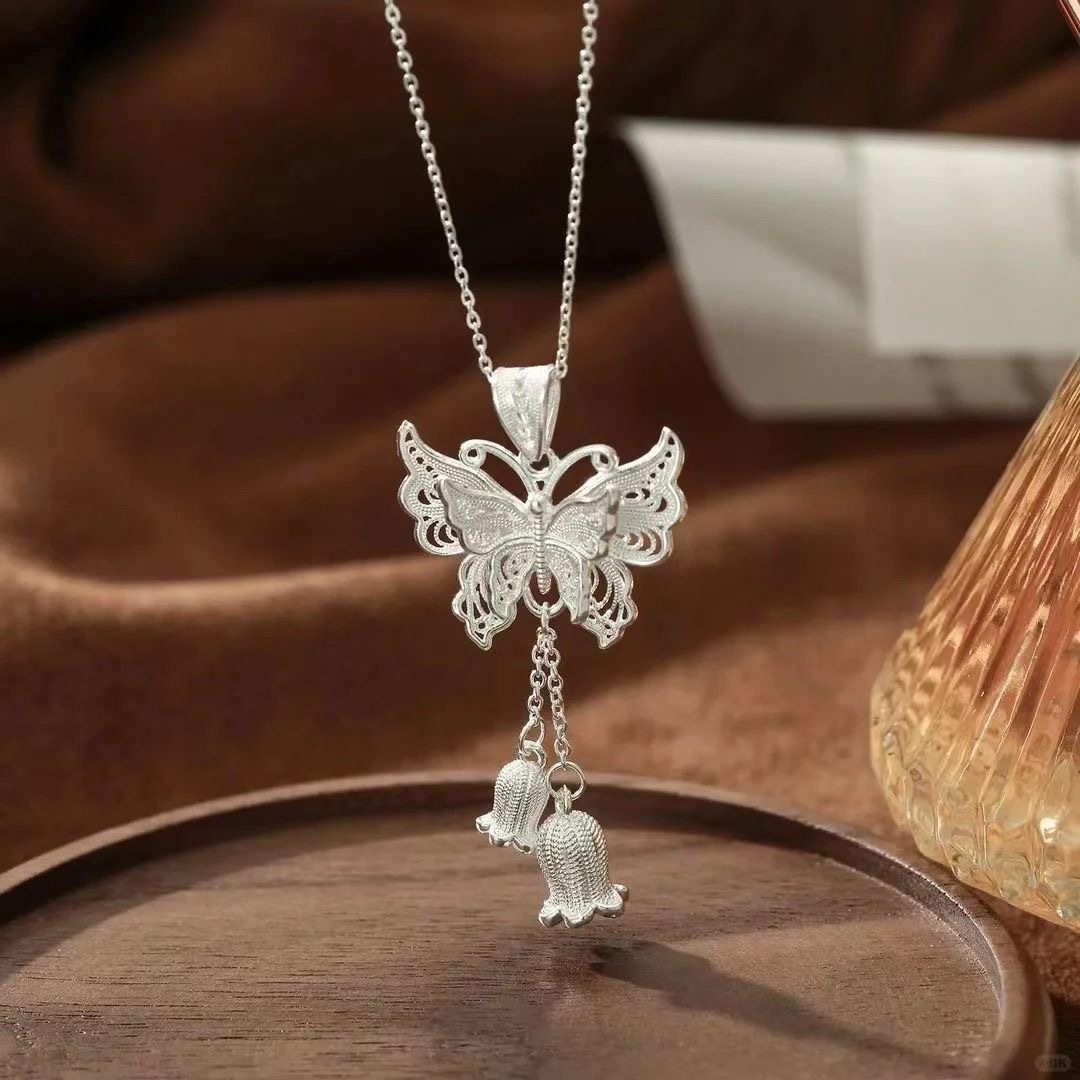 Titanium Steel New Chinese Style Butterfly Lily of the Valley Necklace Women's Elegant Lily of the Valley Clavicle Chain National Trend New Retro Clavicle Chain