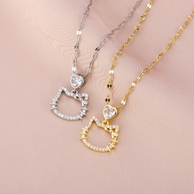 European and American Explosions 2025 Cross-border Color-free New Cartoon Kitty Cat Diamond Necklace Niche Design Advanced Sense