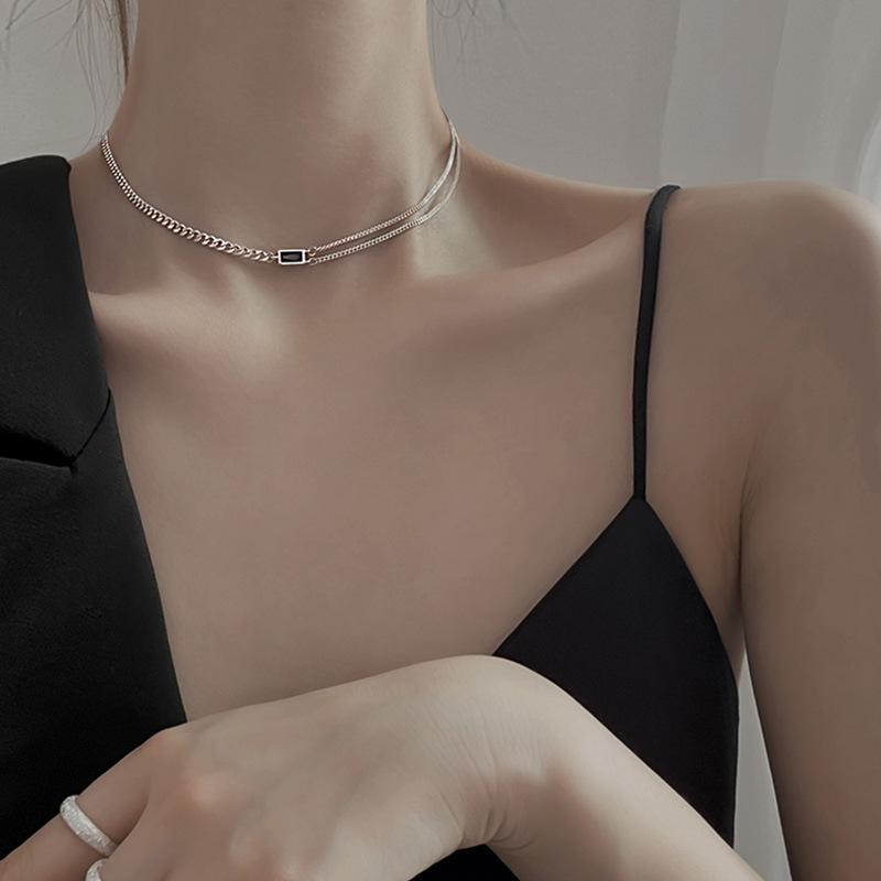 s925 Sterling Silver Necklace Women's Niche Design High-end Clavicle Chain Light Luxury Black Square Summer Necklace choker Jewelry