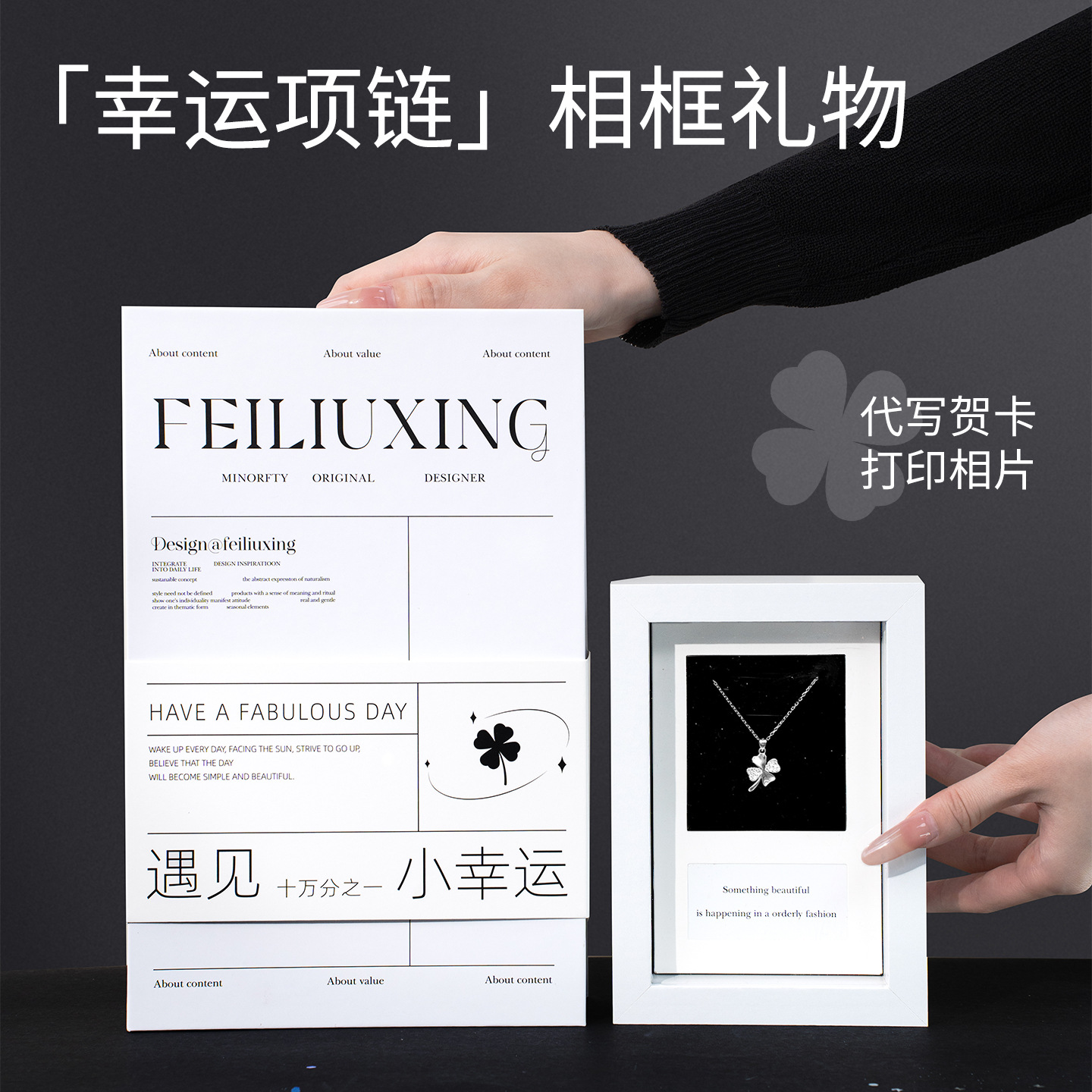 S925 Lucky Four-Leaf Clover Necklace for Women Sterling Silver Birthday Valentine's Day Gift for Girlfriend Photo Frame Photo Ornaments Commemorative