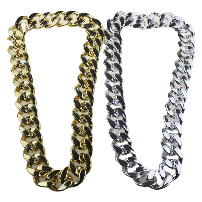 Big Gold Necklace Plastic Simulation Gold Necklace Personality Performance Festival Props Hip Hop Big Gold Chain Team Necklace