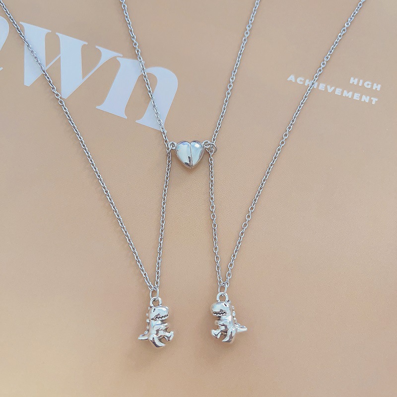 Cross-Border European and American Design Alloy Dinosaur Pendant Love Magnetic Buckle Attracting Couple Necklace Men and Women Pair Magnetic Necklace