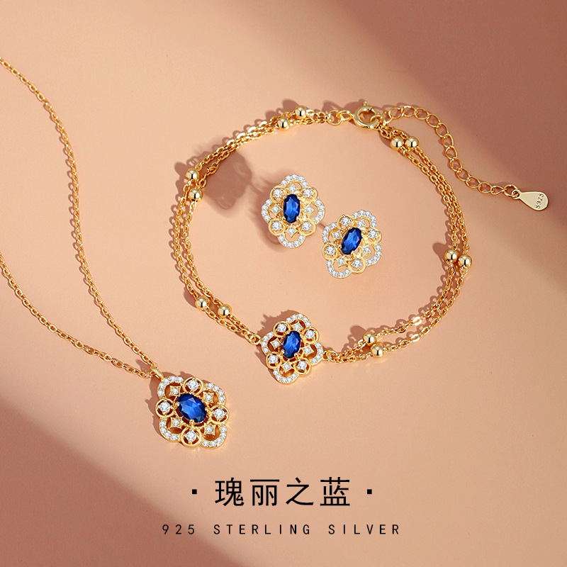 Four-leaf Clover Sterling Silver 925 Necklace Female Niche Design Entry Luxury Blue Zircon Flower Clavicle Chain Ins Love Pendant