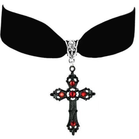 Cross-border Trade Amazon Gothic Cross Ruby Pendant Dark European and American Retro Velvet Necklace