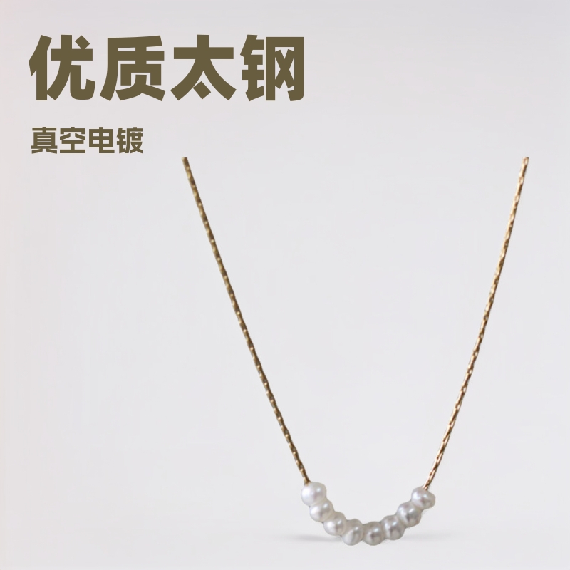 Japanese and Korean small smile eight fresh water pearl bamboo chain necklace short collarbone Choker titanium steel necklace wholesale