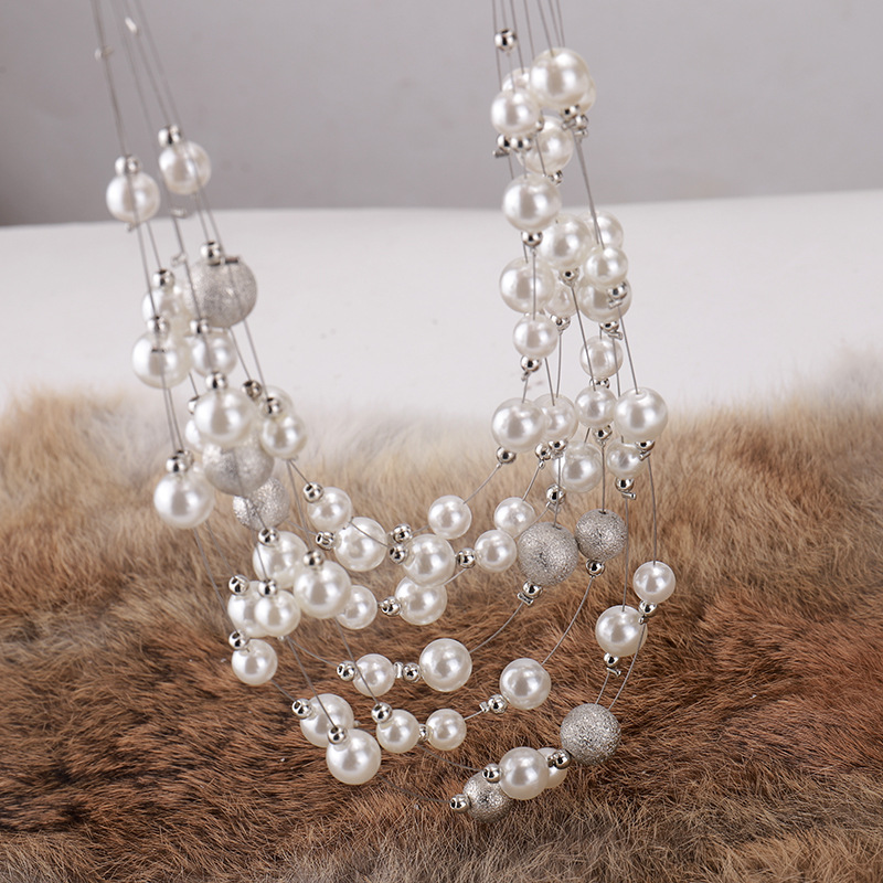 Women's short necklace multi-layer crystal pearl small fragrant style clavicle chain neck chain autumn and winter Joker decorative sweater chain wholesale