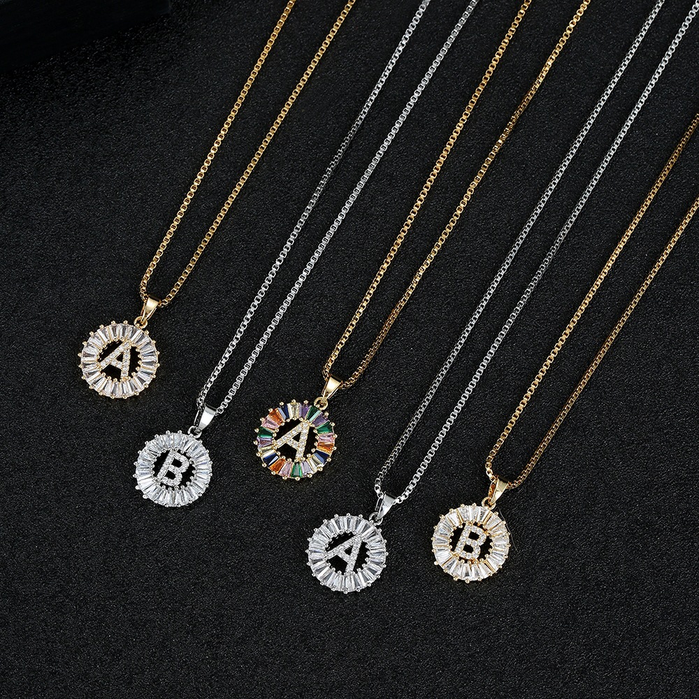 Xiyin Hot-selling Mixed Color Copper Set Zircon Round High-grade Clavicle Chain 26 English Letter Pendant Necklace for Women