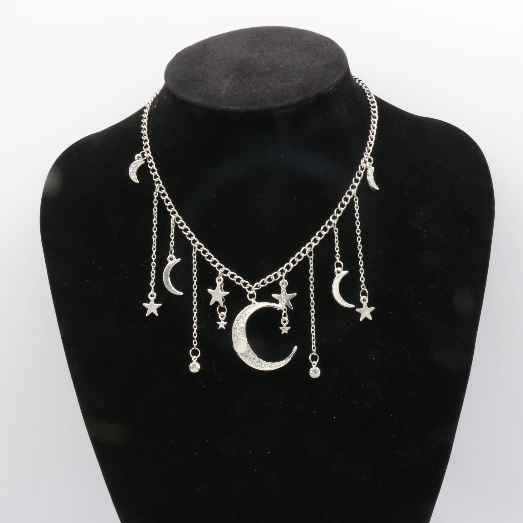European and American cross-border jewelry retro simple tassel Moon five-pointed star star alloy Diamond clavicle chain necklace