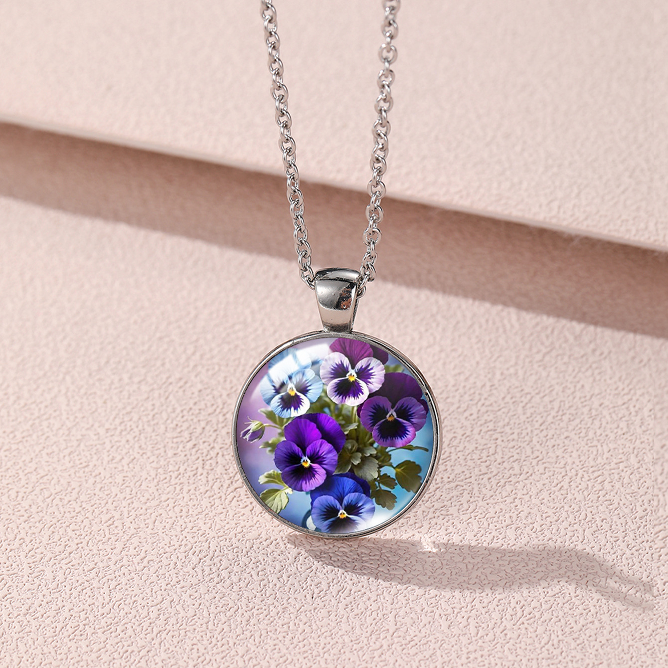 Cross-Border Pansy Flower Watercolor Painting Flower Peripheral Necklace Pendant Creative Personalized Clavicle Chain Sweater Chain Jewelry