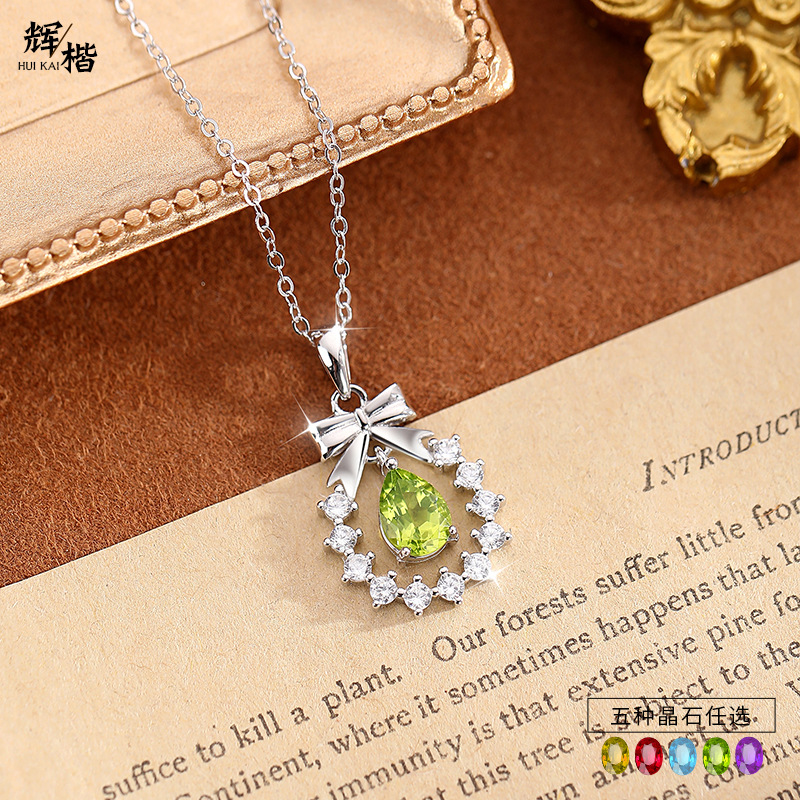 Original Bow Garland Necklace for Women S925 Sterling Silver Accessible Luxury Versatile Fairy Style Natural Crystal Stone Smart Clavicle Chain