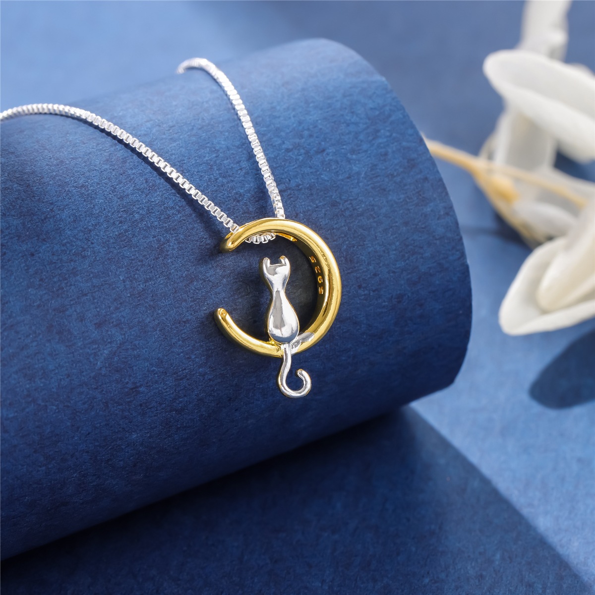 Korean fashion cat golden moon pendant with chain personality necklace women wholesale
