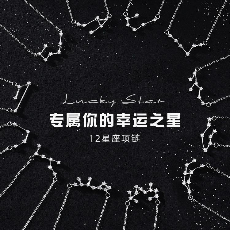 Fang line romantic Guardian twelve constellation star symbol S925 sterling silver simple fashion temperament necklace female clavicle chain
