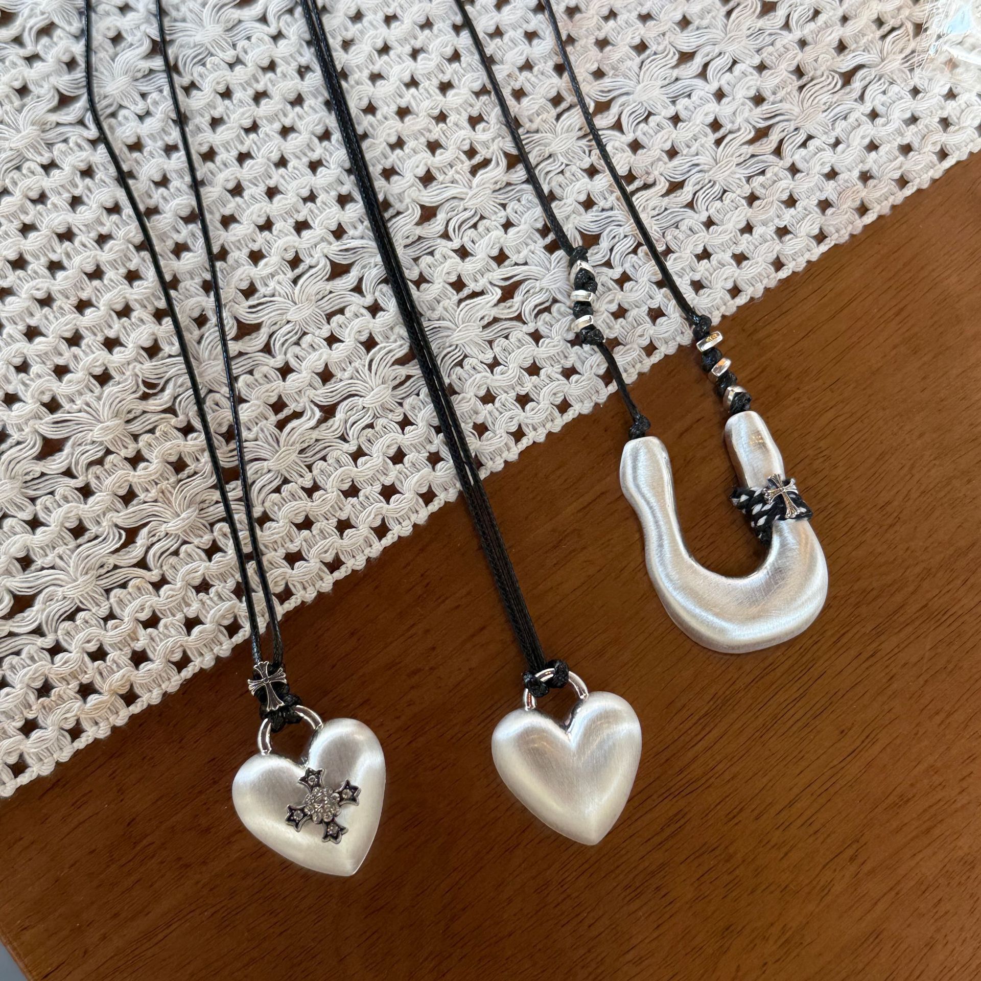 Ins-Style Brushed Cross Heart Black Rope U-Shaped Necklace Niche Design Light Luxury Versatile Design Sweater Chain for Women