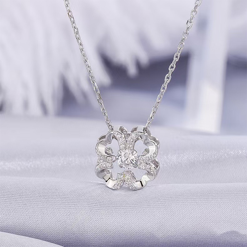 s925 Sterling Silver Diamond Necklace Women's Light Luxury Design High-grade Flash Diamond All-match Four-leaf Clover Fresh Clavicle Chain